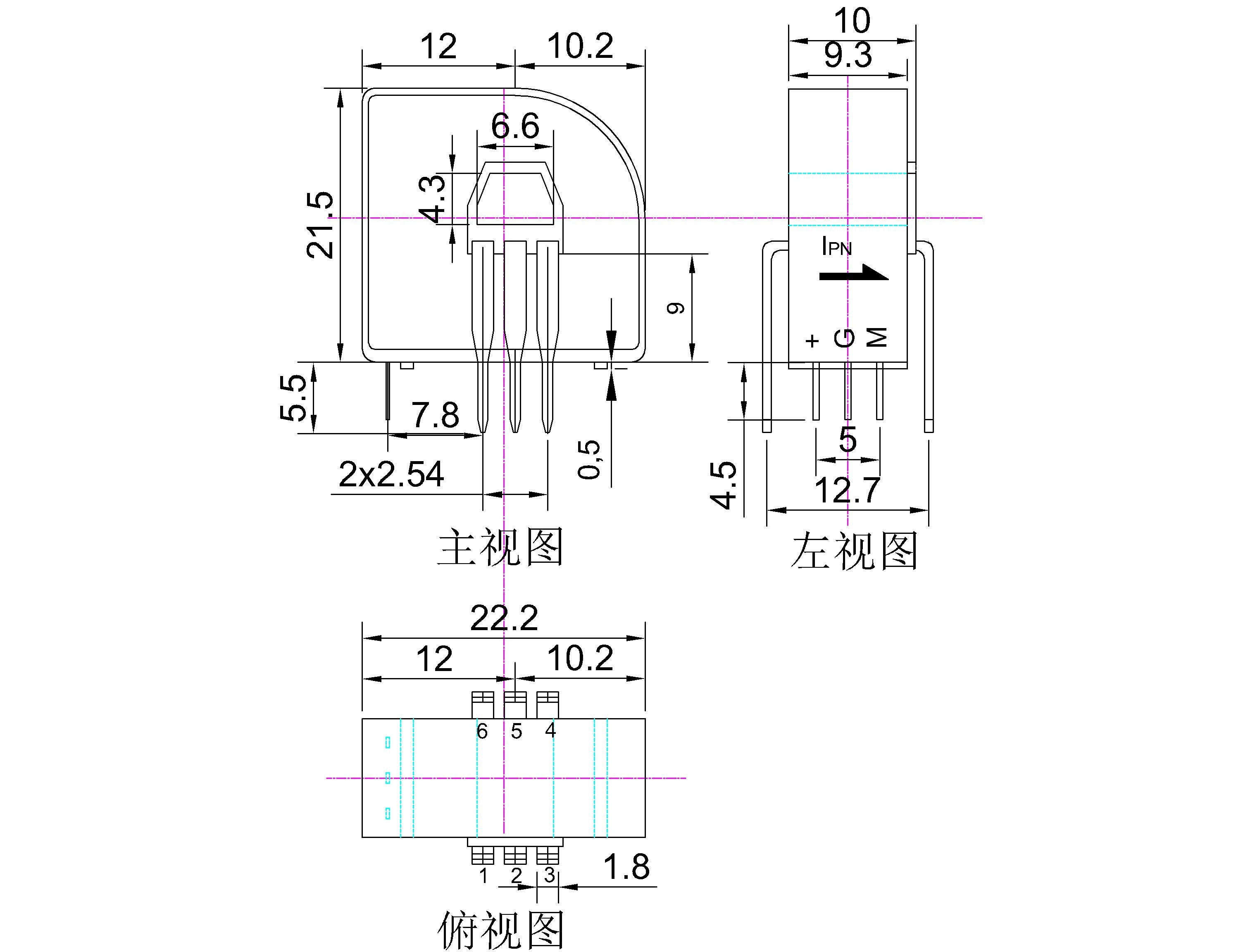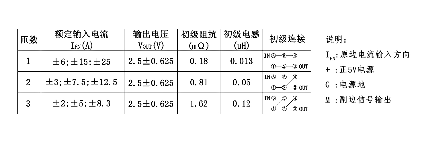 该传感器采用磁平衡霍尔电压检测原理工作。原边电流产生的磁通量与霍尔电压经过放大产生的副边电压,通过副边线圈所产生的磁通量相平衡,副边电压便能精确地反应原边电流。
