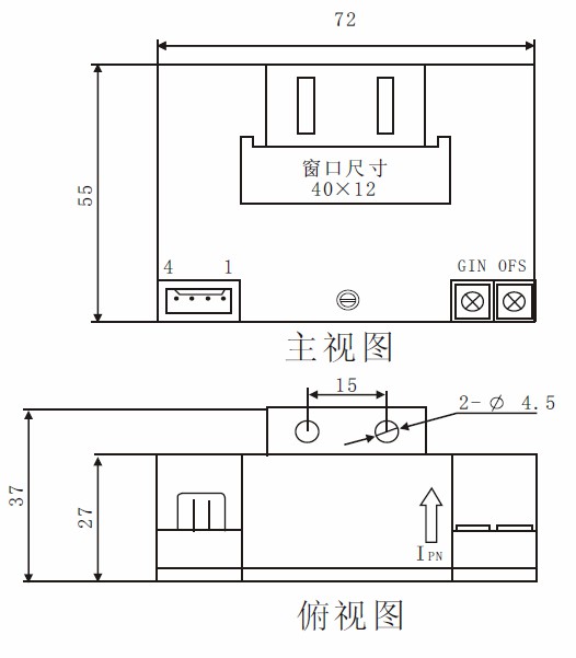 IP 原边电流测量范围 0~±200 0~±400 0~±800 A